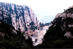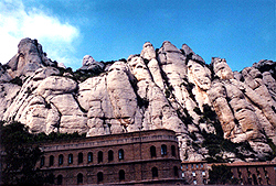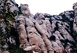 継いで辿り着くモンセラートは、灰白色の巨岩群が 連なる壮大な山々です。不思議な形をした奇岩群か らは、ガウディもインスピレーションを得たと云わ れています。 あいにくの曇り空で、肌寒い一日でした。 |