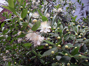 左上は「マートル」 「銀梅花」とも呼ばれる白いお花が 印象的です。