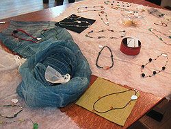 宮本さんは、アンティークのビーズ、石などを 倉本さんは、銀と真珠を、それぞれ素材に、 すてきなアクセサリーを創作されています。 まずは、宮本さんのコレクション。